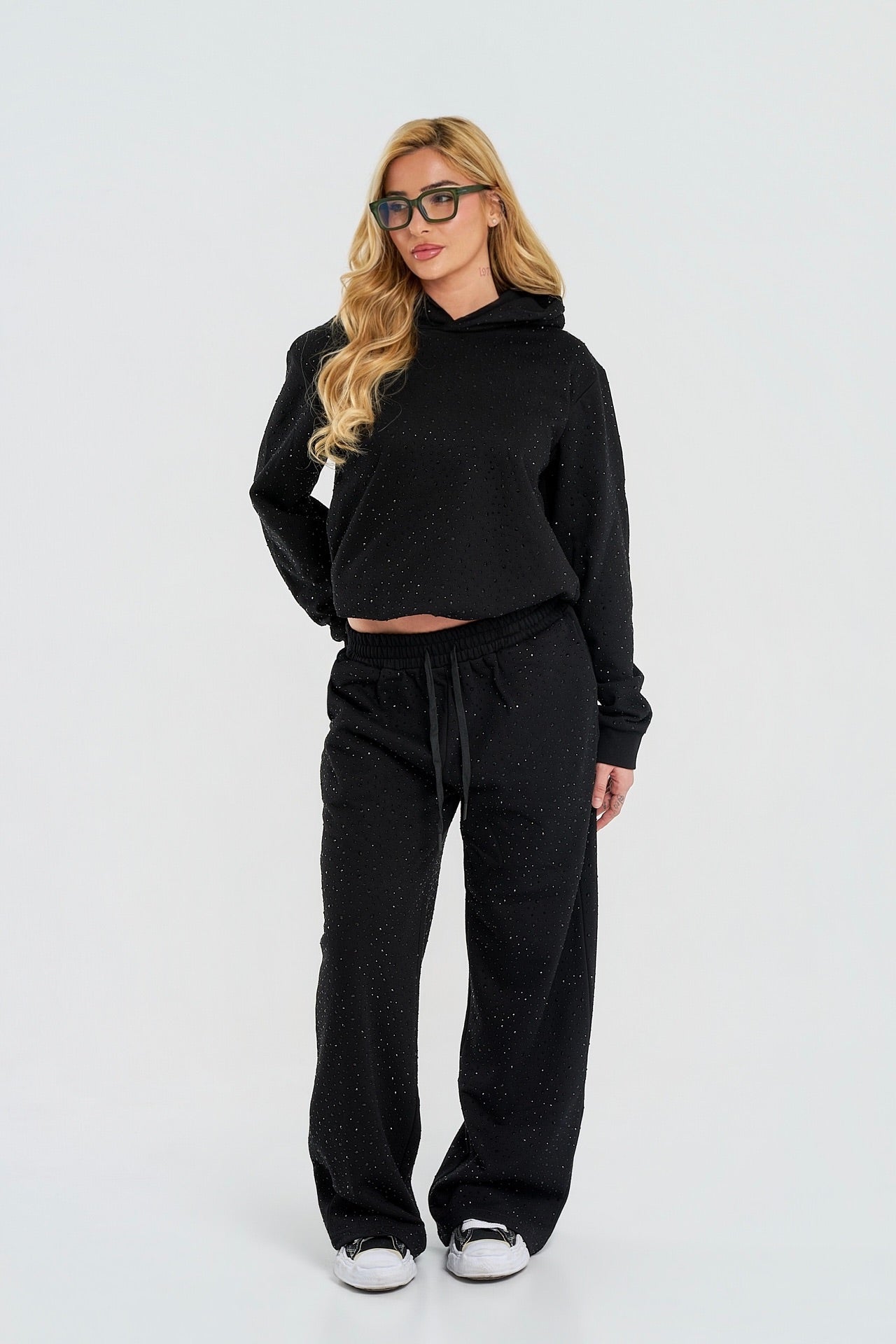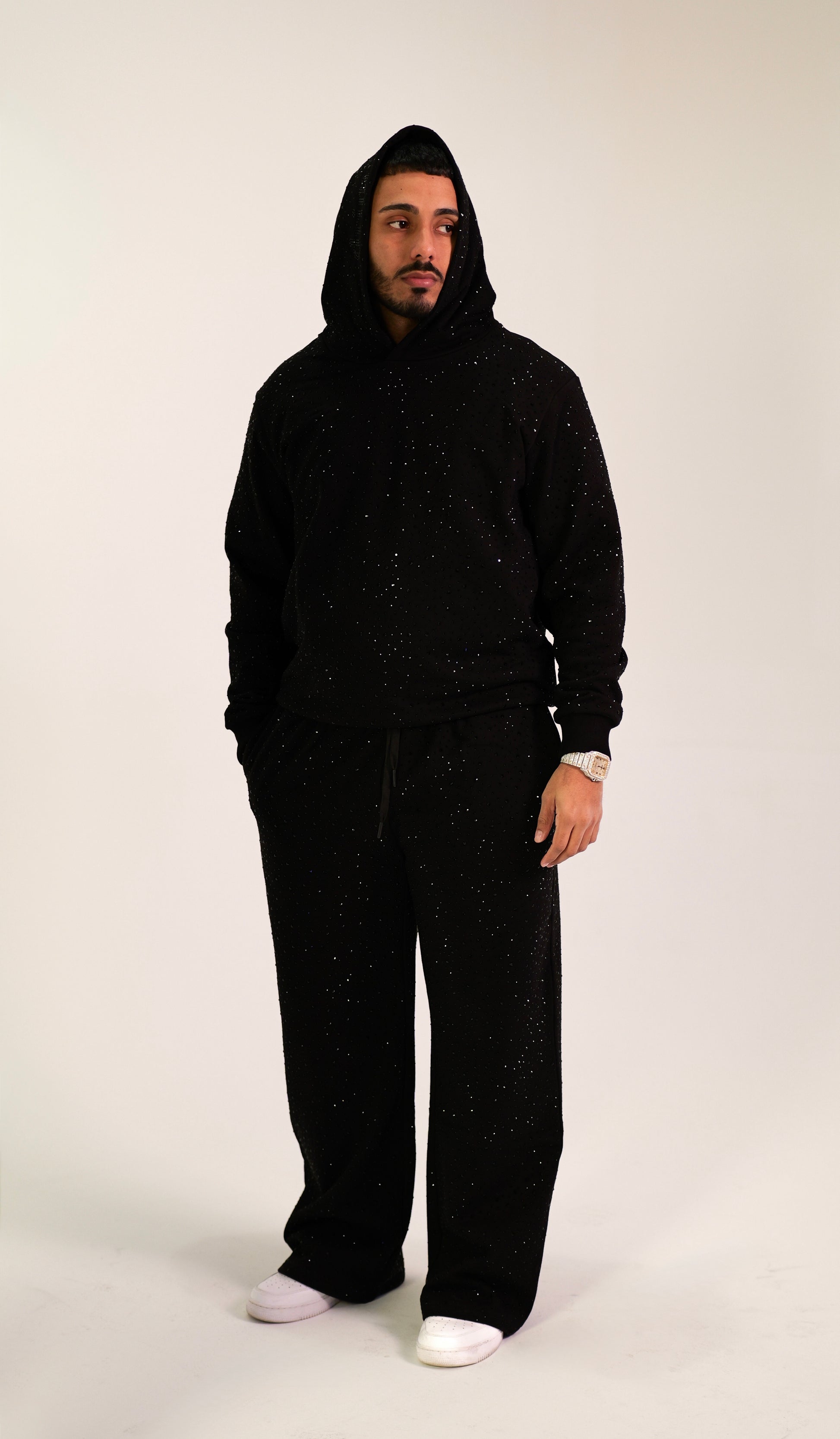 After Dark Set is designed for comfort, confidence, and presence. Crafted from heavyweight 400 GSM fabric and finished with precision rhinestone detailing, it delivers a clean, elevated silhouette for everyday wear.