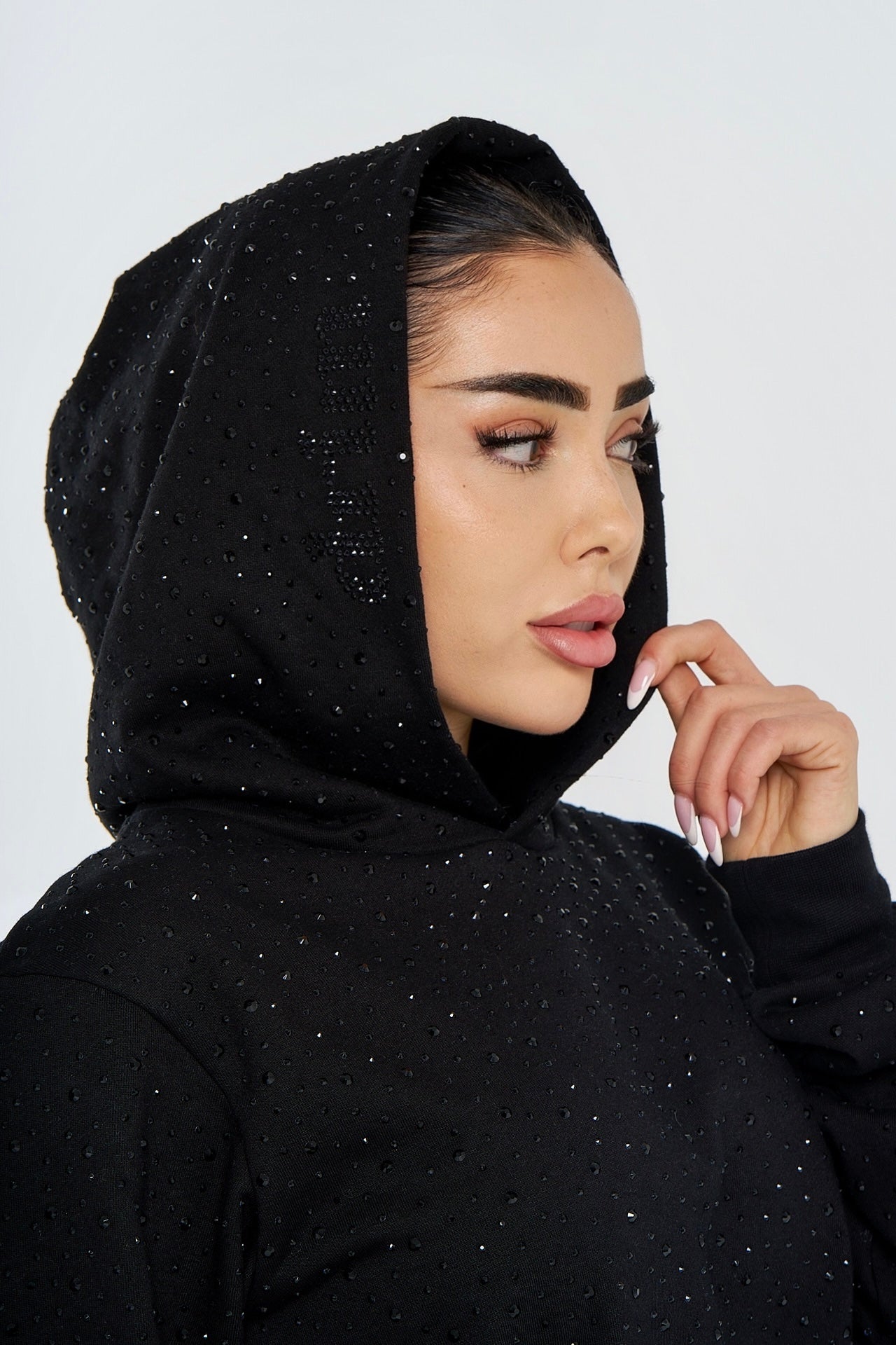 Inner hood band finished with rhinestones